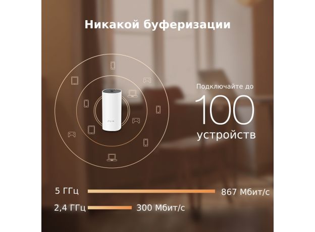 Благодаря скоростному Wi-Fi стандарту 802.11ac Deco способен обеспечить непрерывное соединение до 100 устройств.
