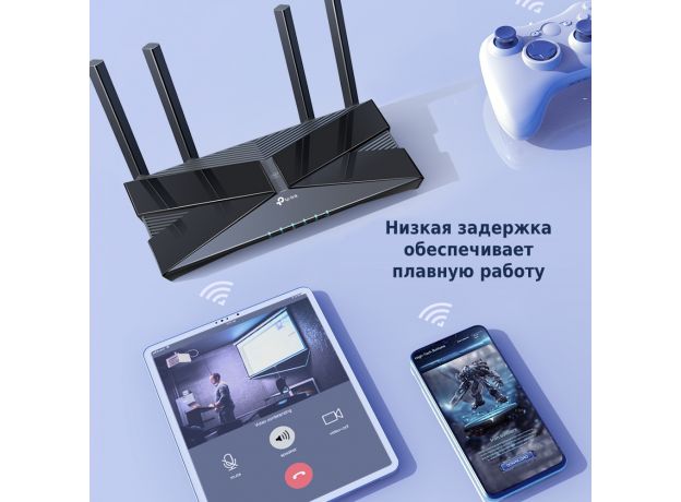 Делая большой шаг вперёд в сфере беспроводной связи, Wi-Fi 6 обеспечит стабильный и быстрый Wi-Fi в домах с большим количеством устройств. Наслаждайтесь онлайн-играми с быстрым откликом и плавными видеозвонками, даже когда данные передаются с нескольких устройств одновременно.