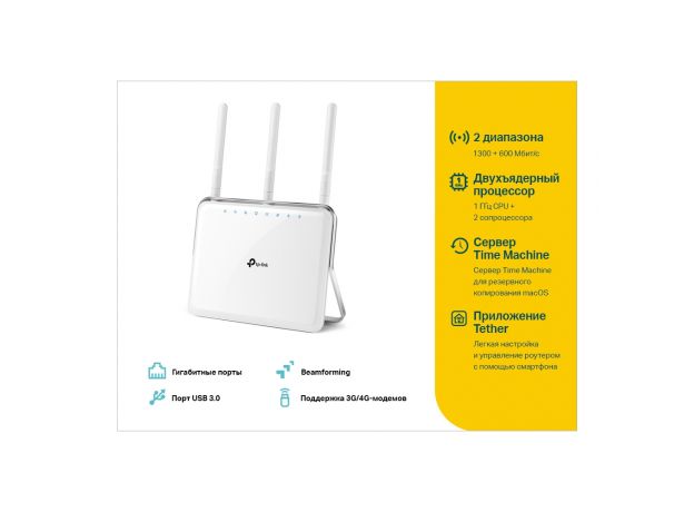 Archer C9 поддерживает стандарт беспроводной связи 11ac, обеспечивая общую скорость передачи данных до 1,9 Гбит/с (до 600 Мбит/с на частоте 2,4 ГГц и до 1300 Мбит/с на 5 ГГц). Роутер использует два беспроводных чипа, увеличивающих производительность диапазонов 2,4 ГГц и 5 ГГц, способствуя превосходному покрытию Wi-Fi сети. Отличное покрытие, гигабитная скорость Wi-Fi подключения и портов Ethernet делают его идеальным для таких ресурсоёмких задач, как просмотр HD-видео и онлайн-игры, позволяя использовать невероятно быстрое подключение по всему дому.
