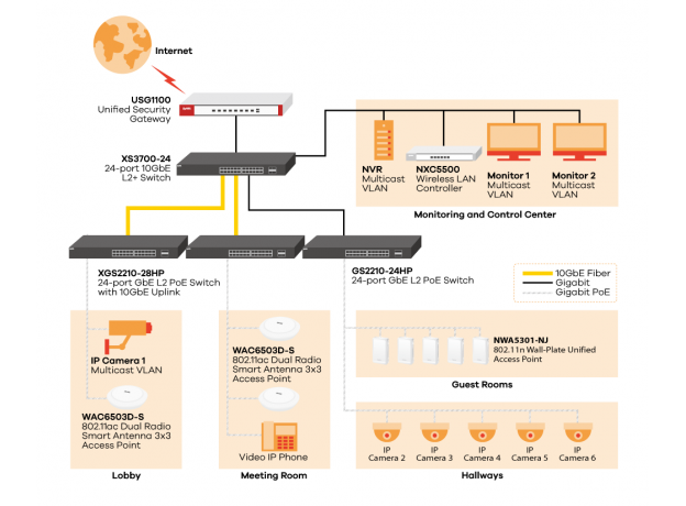 Zyxel XGS2210/GS2210 Series использует мощный функционал Layer 2 для организации передачи по сети трафика VoIP, видеоконференций, IPTV и IP-камер наблюдения, предоставляя отелям, компаниям и образовательным учреждениям гибкое и эффективное управление трафиком современных конвергентных приложений.