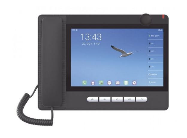 Android 9.0. 20 SIP-линий, 3-сторонняя конференция, точка доступа 10,1-дюймовый цветной емкостный сенсорный дисплей (1280x800) Доступно 112 ключевых записей DSS Поддержка гарнитуры EHS Встроенный 2.4G/5G WiFi и Bluetooth