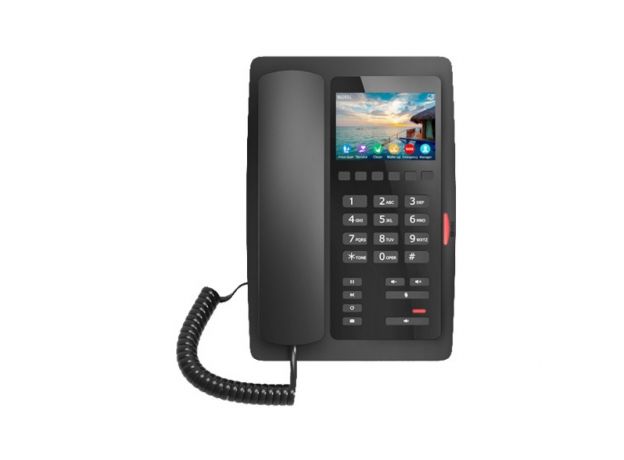 - Гостиничный IP-телефон Fanvil H5W оснащен одним цветным экраном диагональю 3,5 дюйма.