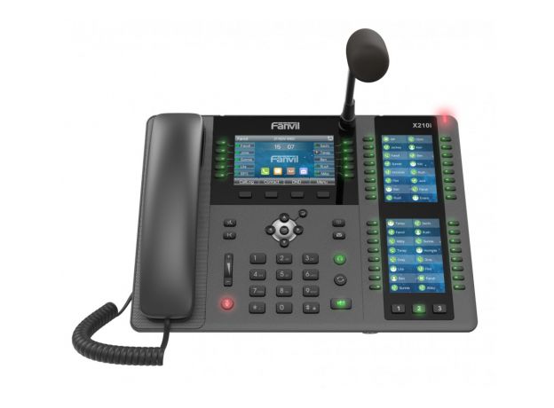 Fanvil X210i - это корпоративный IP-телефон высокого класса для пользователей, которым необходим доступ к гибким и расширенным функциям для обработки средних и больших объемов вызовов в повседневной работе. Благодаря 10 клавишам DSS на 4,3-дюймовом главном цветном дисплее, до 106 клавишам DSS (42 физических) с BLF на боковых цветных дисплеях 2 × 3,5 дюйма. На аппарате функция быстрого набора, функции группового вещания и т. д. Телефон поставляется с HD-аудио, встроенным Bluetooth, возможностью подключения к Wi-Fi, поддержкой EHS, двойной гигабитной сетью, PoE, IP-камерой / SIP-домофоном, обеспечивая высокую производительность с этими расширенными функциями.