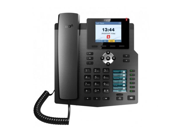 Fanvil X4U - это профессиональный VoIP-телефон с сетевыми портами 10/100/1000, с цветным дисплеем и вторым 6-ти строчным ЖК-дисплеем на 5 страницах, всего 30 настраиваемых клавиш.