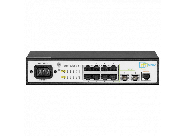 Коммутатор SNR-S2965-8T входит в новую линейку управляемых коммутаторов SNR-S2965, предназначенную для использования на уровне доступа в сетях операторов связи и корпоративных сетях.