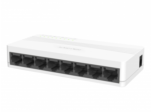Коммутатор Fast Ethernet DS-3E0108D-E оснащен 8 портами 10/100 Мбит/с с автосогласованием и разъемами RJ45. Все порты поддерживают функцию авто-MDI/MDIX, устраняя необходимость использования кабеля с перекрещивающимися парами или портов с поддержкой функции Uplink.