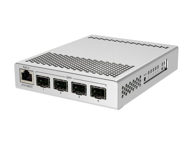 CRS305-1G-4S+IN — небольшой управляемый L3-коммутатор MikroTik настольного исполнения, работающий под управлением операционных систем RouterOS / SwOS с функцией двойной загрузки "Dual boot". Имеет 4 SFP+ порта и 1 Ethernet-порт 1 Гбит.