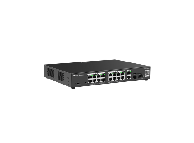 - 16 портов PoE+, 2 порта RJ45, 2 порта SFP
