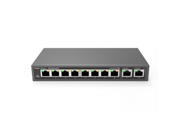 8 портов PoE/PoE+ 10/100 Мбит/с, 2 восходящих порта 10/100 Мбит/с