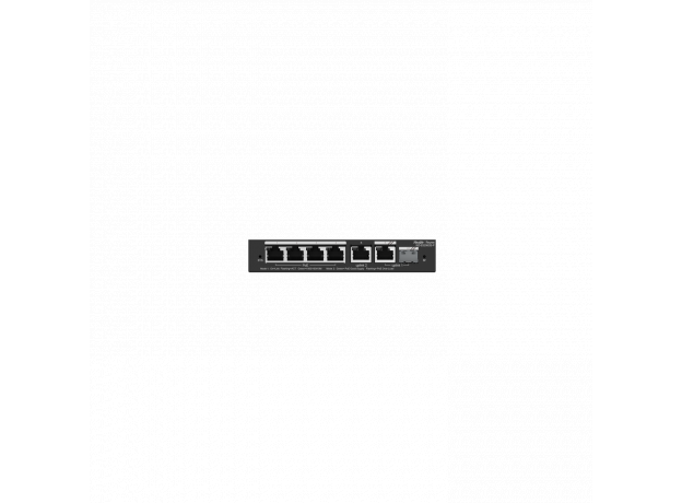 - 6-портовый гигабитный управляемый коммутатор с 4 портами PoE+ и 1 комбинированным портом
