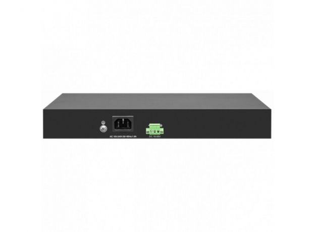 Наличие дополнительного разъема для подключения резервного источника питания DC 12V упрощает организацию бесперебойного питания и обеспечение коммутатора электроэнергией в полевых условиях.