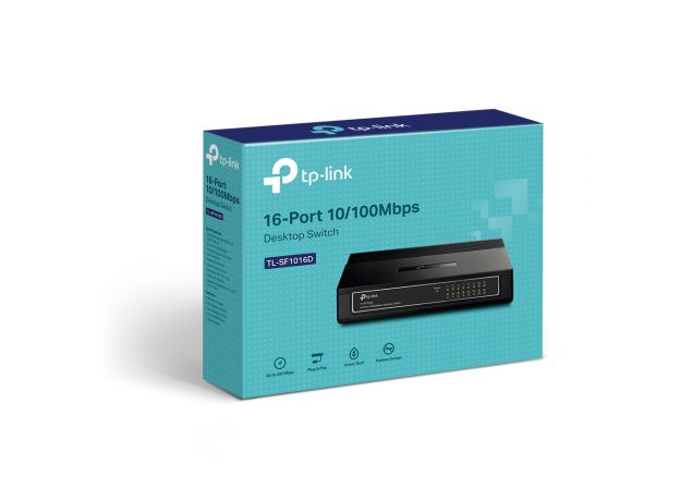 | Комплект поставки | TL-SF1016D, 16-портовый 10/100 Мбит/с настольный коммутатор Адаптер питания Руководство пользователя |