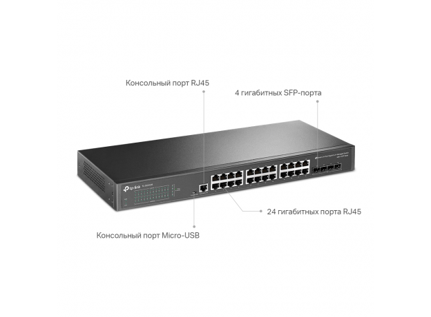 JetStream 24‑портовый гигабитный управляемый коммутатор уровня 2+ с 4 SFP‑слотами