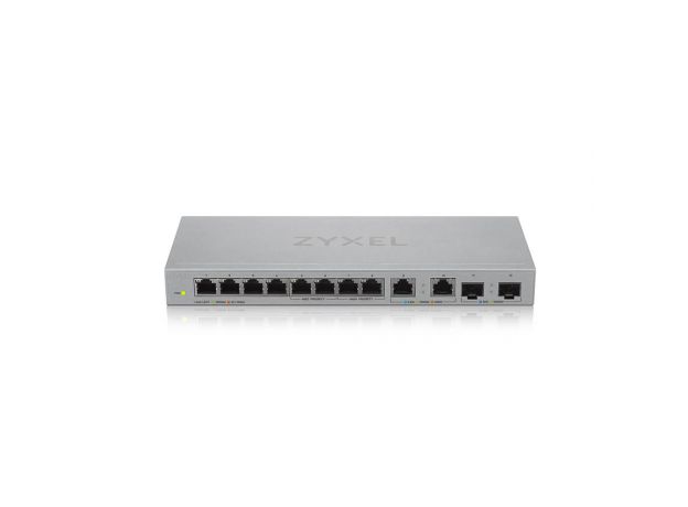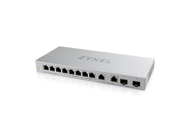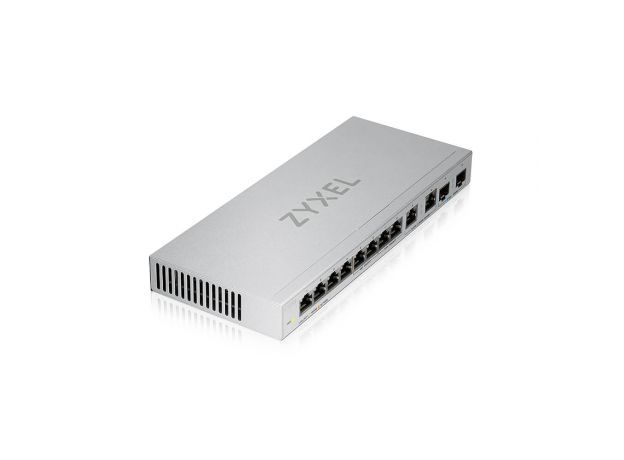 Коммутатор Zyxel XGS1010-12 оборудован восемью гигабитными портами Ethernet, двумя портами 2.5 Gigabit и двумя портами 10 Gigabit SFP+ uplink. Порты 10 Gigabit SFP+ требуются для быстрой передачи данных между клиентскими устройствами и системами хранения NAS или другим оборудованием ядра сети, а порты 2.5 Gigabit нужны для обеспечения работы точек доступа 802.11ax на максимальной скорости работы беспроводного соединения. Этот коммутатор разработан для заказчиков, которым требуется доступное по стоимости решение для внедрения 10GbE в домашней сети и в небольшом офисе.