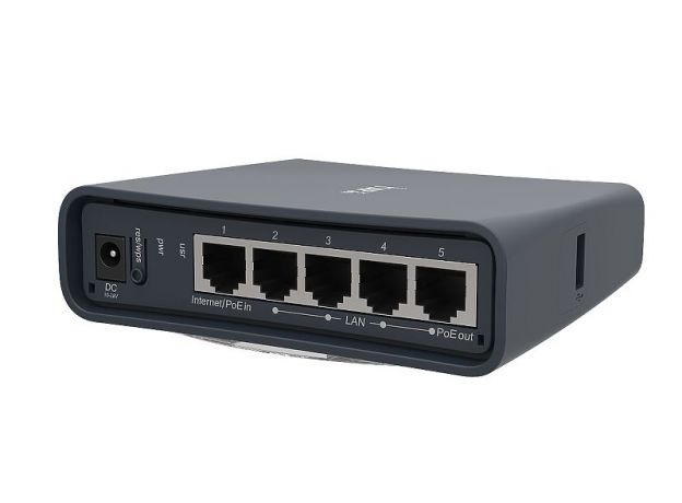 Устройство имеет возможность «питаться» по PoE на порту ether1, а возможность PoE-OUT на пятом порту Fast Ethernet дает отличную возможность подключить использующее для работы Passive PoE (ether5 выдает такое же напряжение, которое подано на само устройство). Теперь меньше проводов и блоков питания!