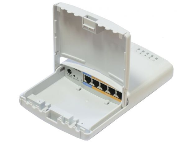PowerBox – компактный беспроводной маршрутизатор MikroTik в погодоустойчивом корпусе с 5-ю экранированными LAN-портами 10/100 Мбит (Fast Ethernet) с функциями авто определения, а также с процессором QCA9533 с частотой 650 МГц. Порты № 2–5 имеют поддержку подачи питания подключённым устройствам Passive PoE 8—30 В (при этом, макс. сила тока на порт = 1 А, на все порты = 2 А) — благодаря этому Вы с лёгкостью сможете обеспечить питанием до 4-х устройств (например, из серии SXT, или других). Питание самого устройства может осуществляться либо благодаря входящему в комплект блоку питания 24 В, 2.5 А, либо посредством PoE in стандарта Passive PoE 8—30 В (на Порту №1).