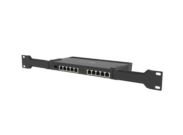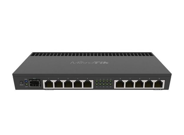 RB4011iGS+RM — много портовый маршрутизатор MikroTik из новейшей серии оборудования MikroTik RB4011, в прочном металлическом корпусе, оснащённый мощным четырёхъядерным процессором Cortex A15 AL21400(Amazon Annapurna Labs) с аппаратной поддержкой шифрования IPsec,тактовой частотой 1.4 ГГц, как и в устройстве RB1100AHx4. Устройство оснащено 1 ГБ оперативной памяти, 10-ю Ethernet-портами 1 Гбит (порт №1 оснащен поддержкой получения питания от других устройств посредством PoE in стандарта 802.3af/at(PoE+) 18—57 В; порт №10 оснащён поддержкой питания подключённых устройств посредством PoE out стандарта Passive PoE до 57 В), 1-импортом SFP+(10 Гбит) (модули приобретаются отдельно), консольным портомRJ45. Питание маршрутизатора также может осуществляться посредством входящего в комплект блока питания 24 В, 1.5 A. Устанавливается в коммутационную стойку 19 дюймов.