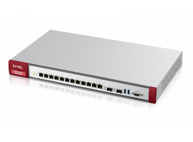 Zyxel ZyWALL USG FLEX 700 - аппаратный межсетевой экран / маршрутизатор, обеспечивающий функции пограничного антивируса, спам-фильтра, детектора атак, контент-фильтра и контроллера точек доступа с «бесшовным» масштабируемым подключением к сети через шлюз. Оснащен 12 гигабитными конфигурируемыми портами RJ-45 (LAN/WAN), 2 конфигурируемыми портами SFP, 2 портами USB 3.0 и консольным интерфейсом RS-232. Обеспечивает пропускную способность межсетевого экрана до 5 400 Mbps, обеспечивая доступ в интернет до 800 пользователям. Может работать в качестве VPN-сервера (IKEv2, IPSec, SSL, L2TP over IPSec).