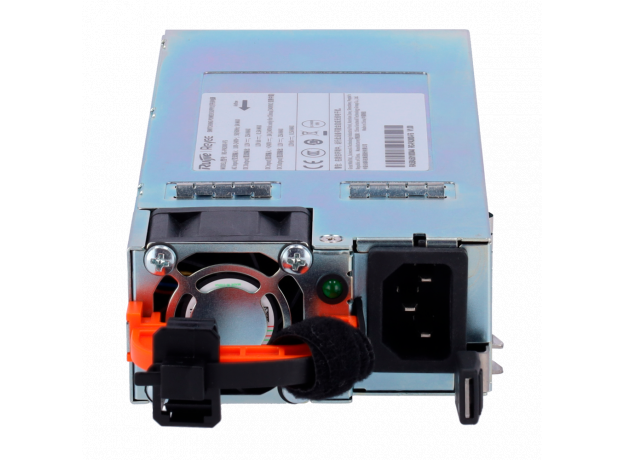 RG-PA300I-FS — это модуль питания переменного тока, который обеспечивает вход переменного тока и подает в систему напряжение 12 В. На передней панели имеется трехконтактный разъем питания переменного тока для подключения стандартного шнура питания на 10 А. Этикетка находится на верхней панели модуля питания.