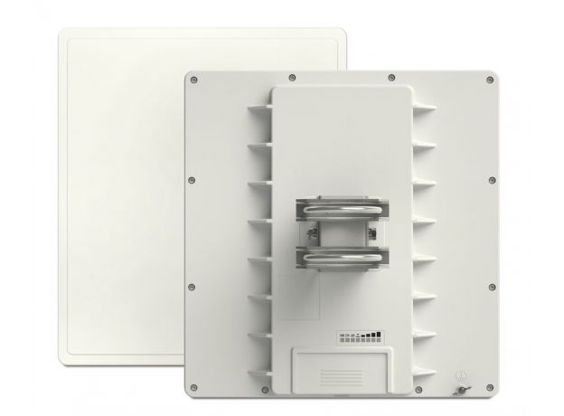 QRT 5 — мощная панельная антенна MikroTik с усилением 24 dBi в прочном защищённом от влаги корпусе. Оснащена встроенным маршрутизатором с мощностью 30 dBm. Работает в частотном диапазоне 5150–5875 МГц MIMO 2x2, поддерживая стандарты беспроводной связи 802.11a/n. Идеальная для работы в качестве компонента соединений типа "точка-точка" (PtP) и "точка-многоточка" (PtMP). Устройство имеет Ethernet порт 1 Гбит с поддержкой входящего питания Power over Ethernet стандарта Passive PoE 8—30 В. Предназначено для эксплуатации на улице. Устанавливается на мачту.