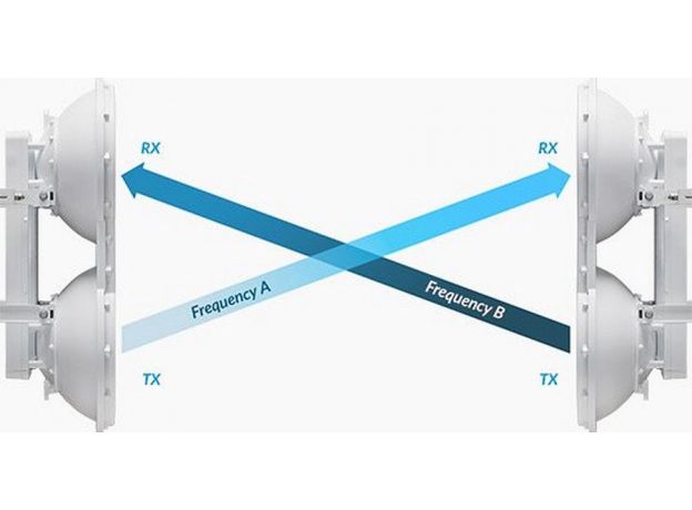 Устройство осуществляет работу с использованием инновационной технологии HDD (Hybrid Division Duplex), которая, в свою очередь, объединяет две технологии FDD (Frequency Division Duplex) и TDD (Time Division Duplex), что позволяет достичь высокой эффективности передачи данных, снизив задержки до минимума. Благодаря двум независимым антеннам с высоким коэффициентом усиления 38 dBi, а также мощному радиомодулю с разделением на независимые каналы приема-передачи, airFiber 24 обладает высокой пакетной производительностью, при этом отсутствует падение скорости при малом размере пакетов. Устройство использует интегрированный GPS-приемник – он позволяет достичь максимальной точности синхронизации между устройствами, что дает большую производительность и снижает взаимные помехи.