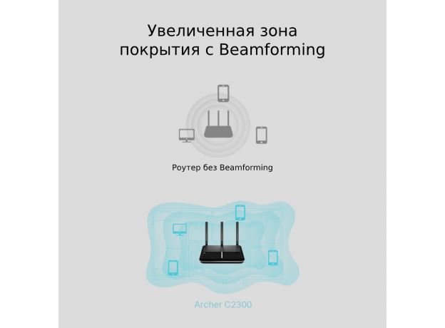 Технология Beamforming направляет Wi-Fi сигнал в сторону подключённых устройств, обеспечивая увеличенную дальность и производительность сети.