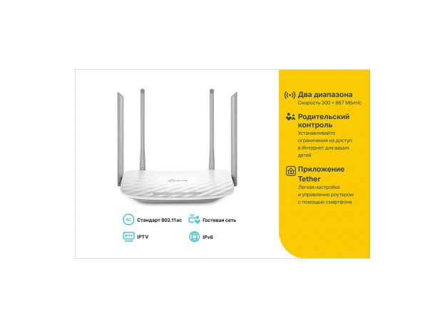 | Комплект поставки | Wi-Fi роутер Archer C50 Адаптер питания Кабель Ethernet RJ45 Руководство по быстрой настройке |
