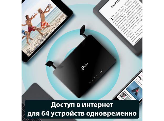 Archer MR400 обеспечивает беспроводное 3G/4G подключение для 64 устройств одновременно, включая планшеты, ноутбуки и смартфоны. Порты LAN также обеспечат интернет для проводных устройств например, для настольных ПК.