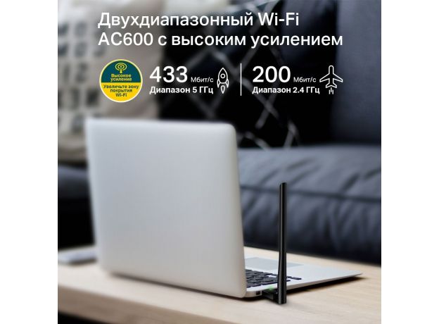AC600 Двухдиапазонный Wi‑Fi USB‑адаптер высокого усиления